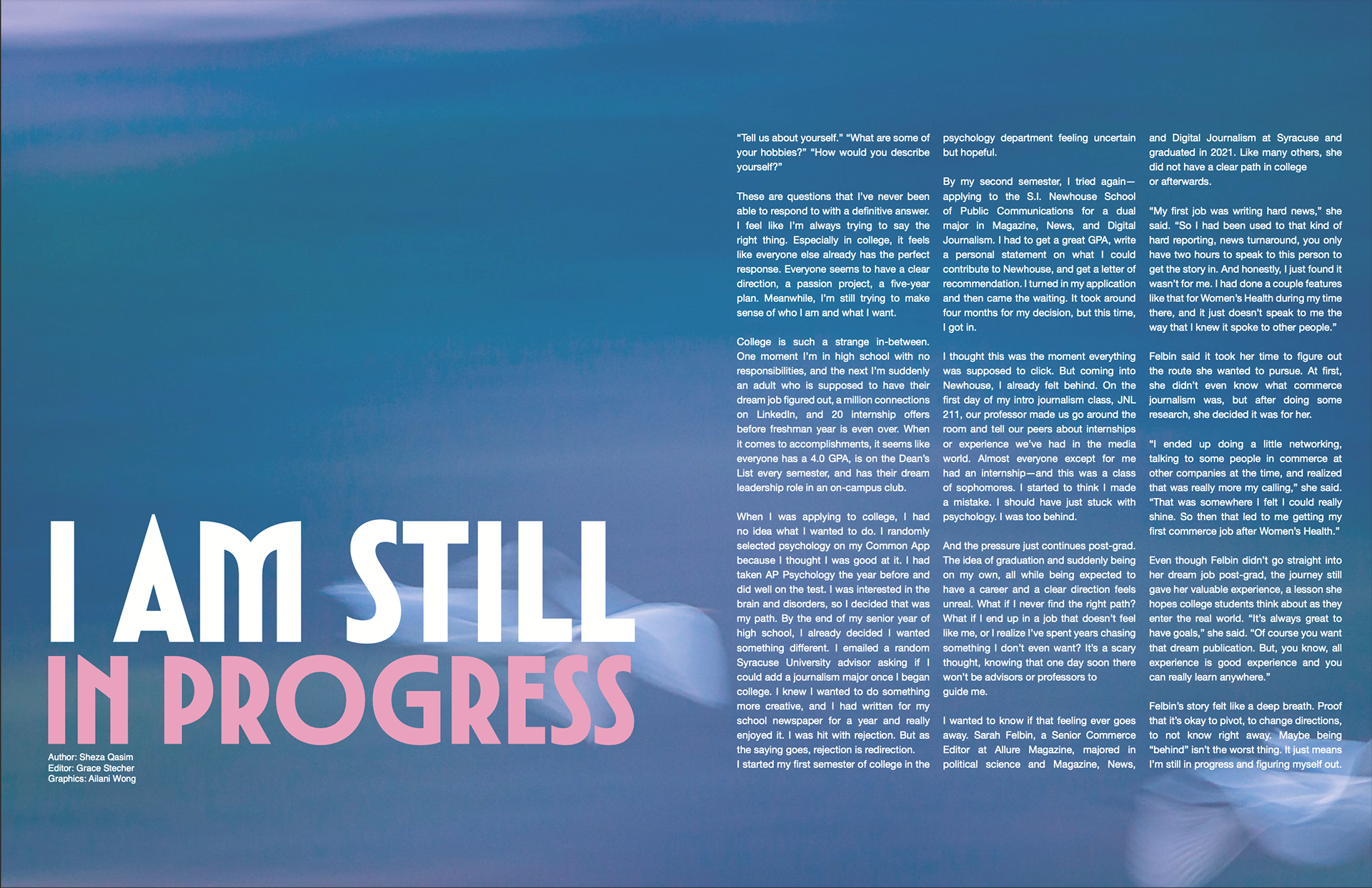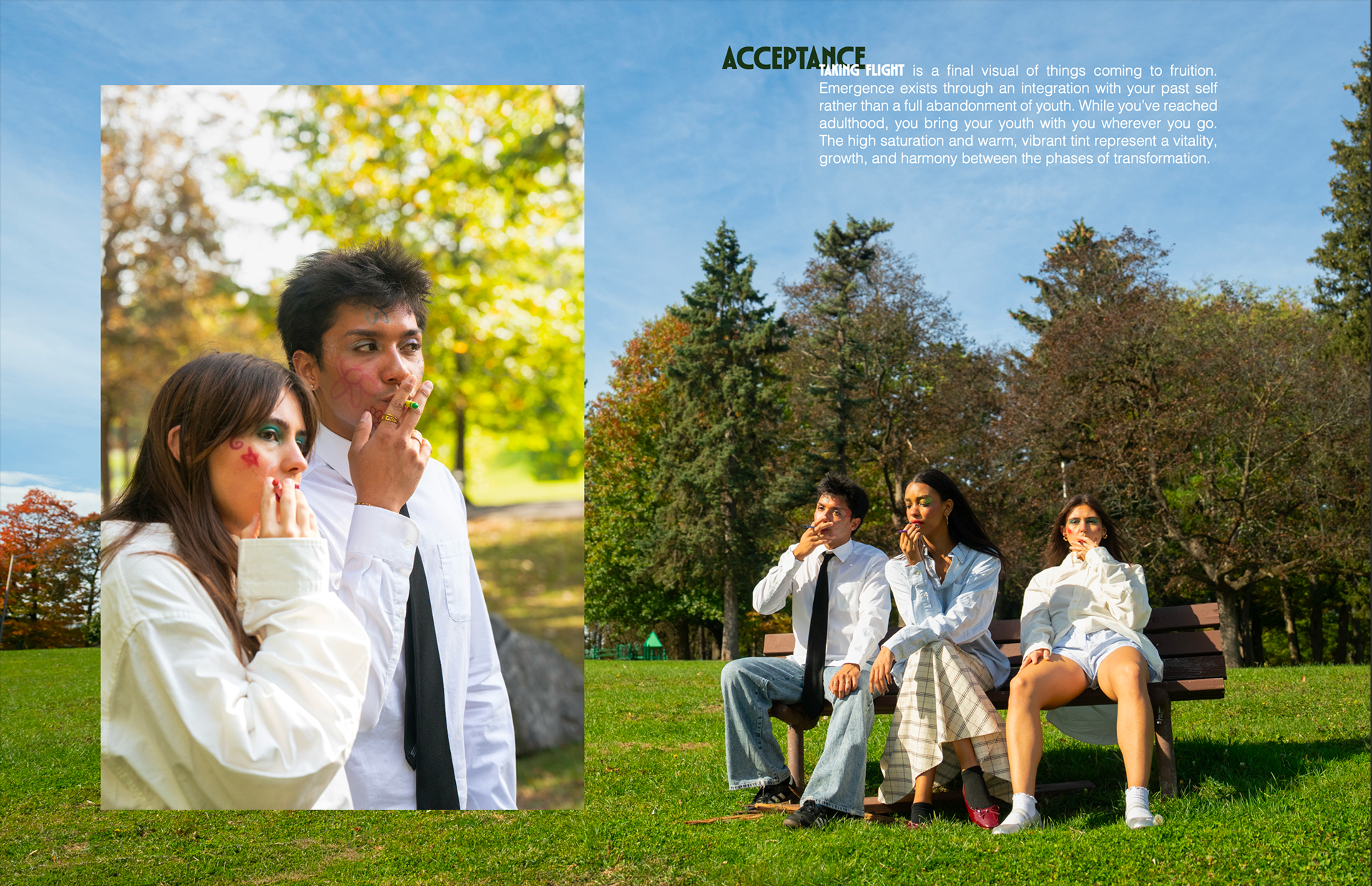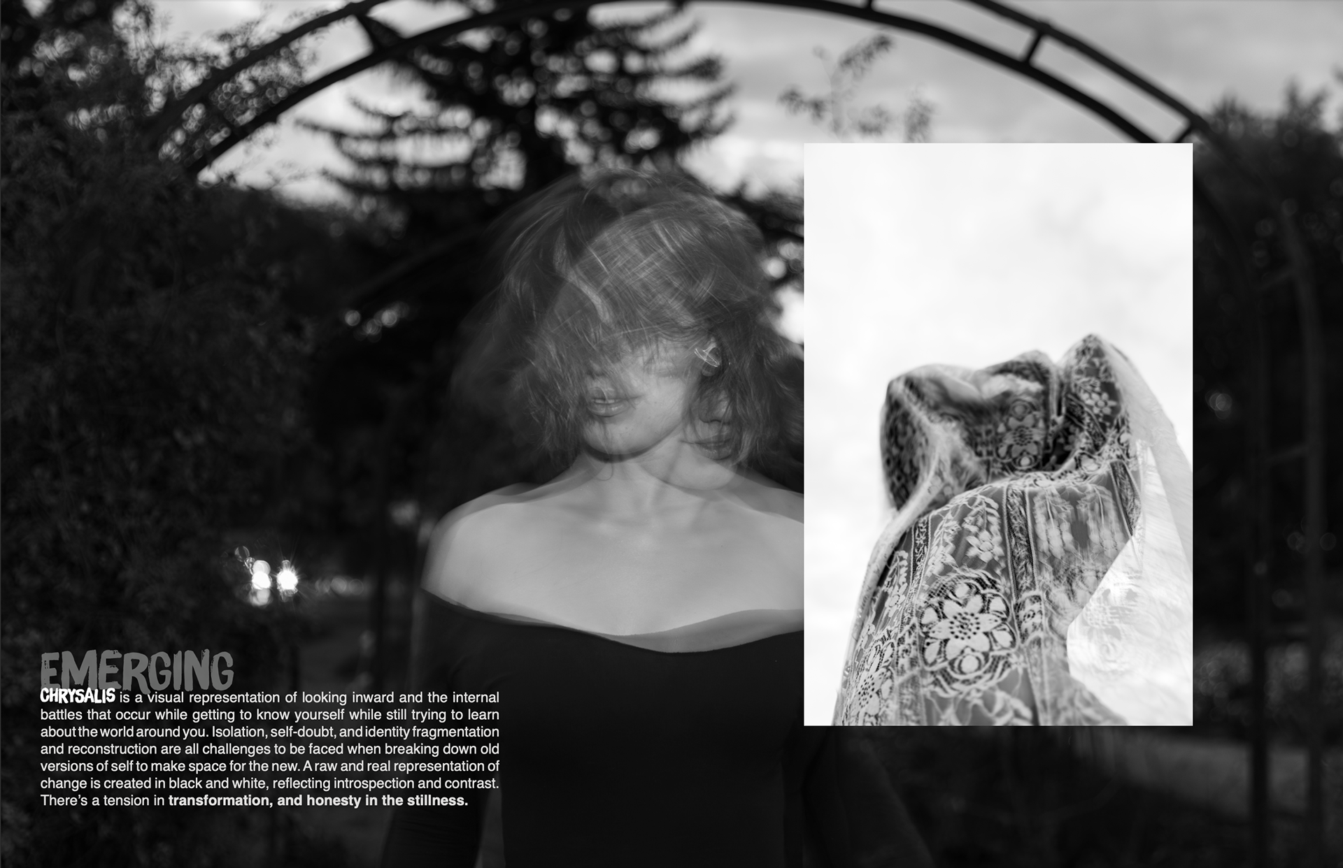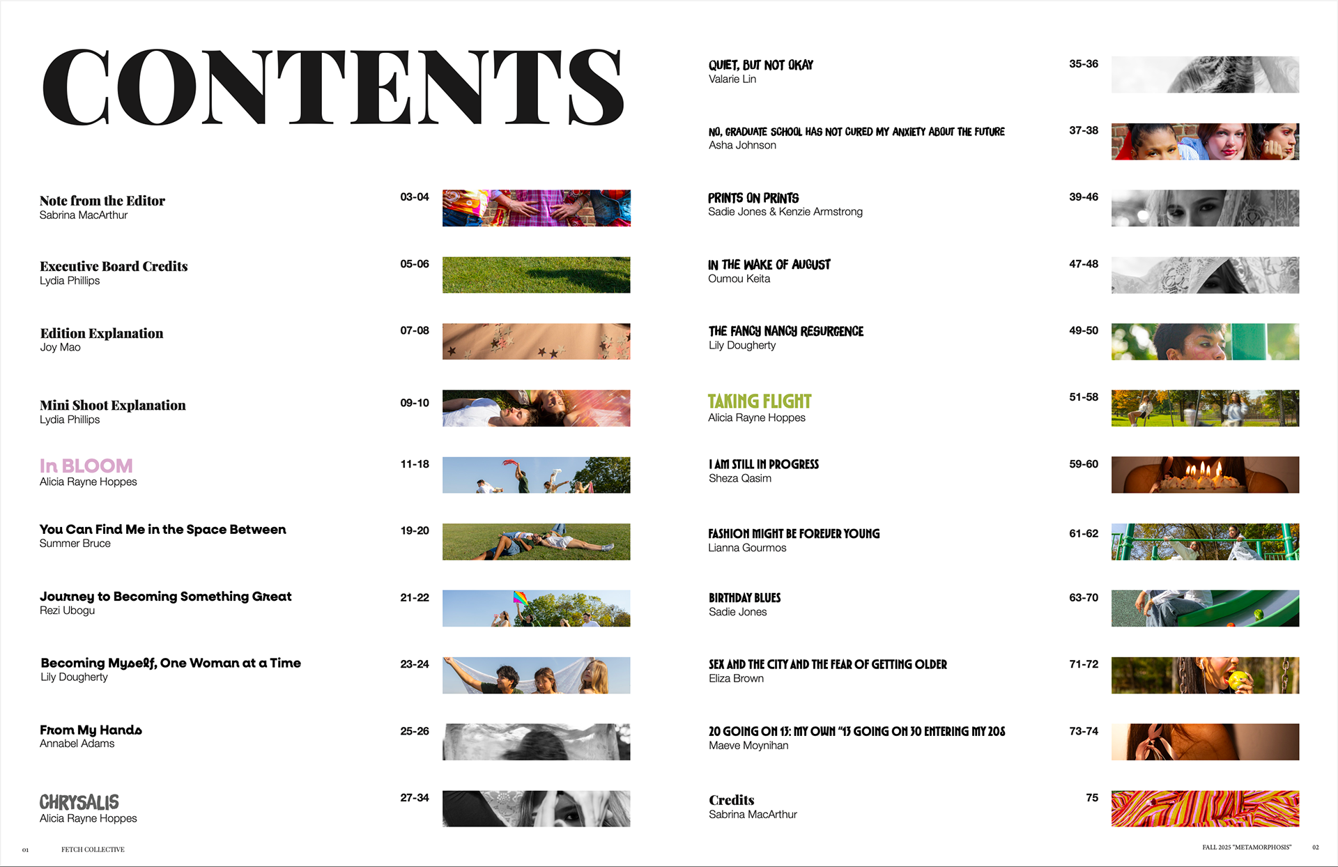 Designed magazine layouts for Fetch Collective's Volume IV: Metamorphosis, translating themes of growth, becoming, and acceptance into editorial spreads while maintaining the Collective's visual identity.