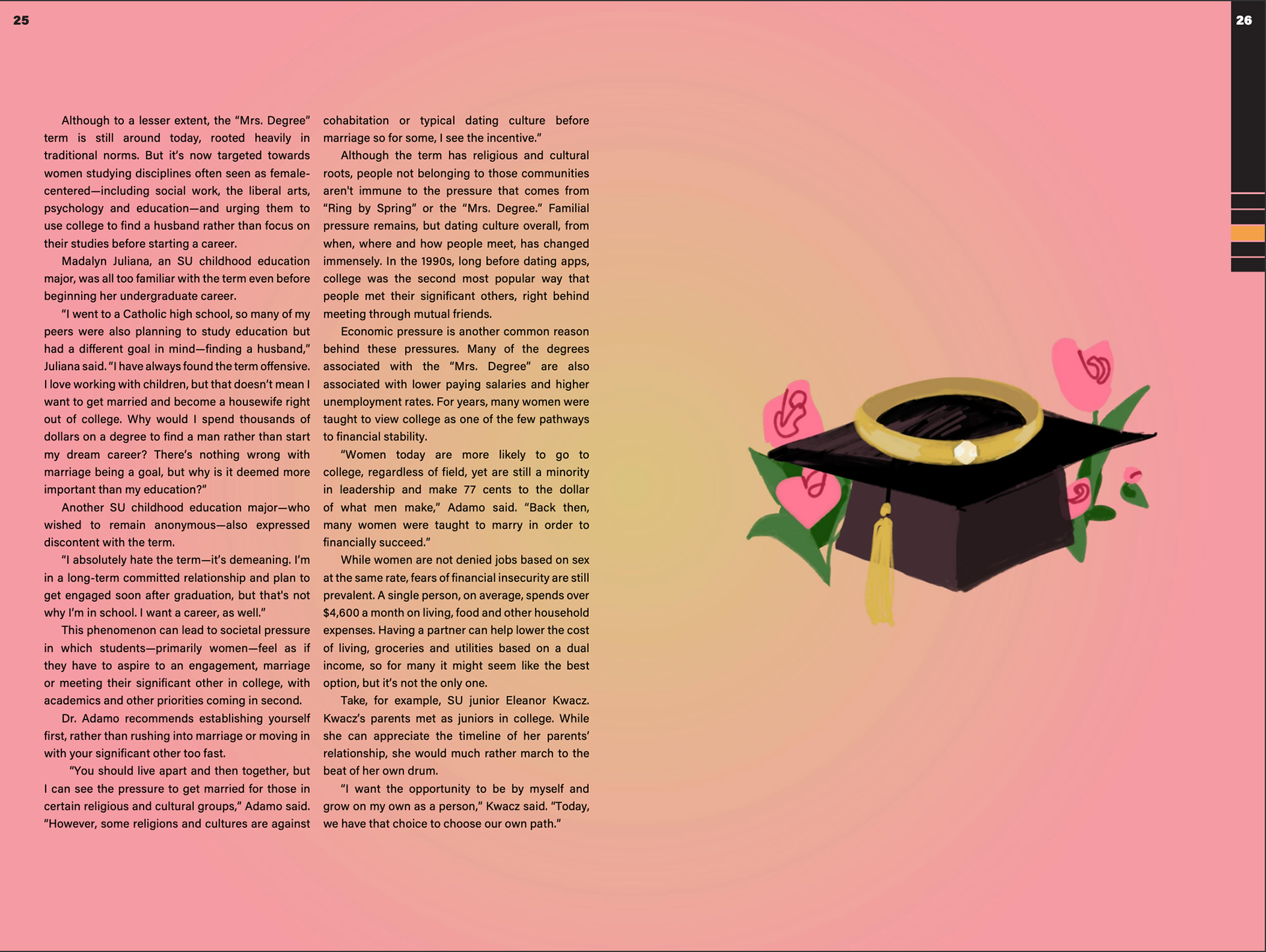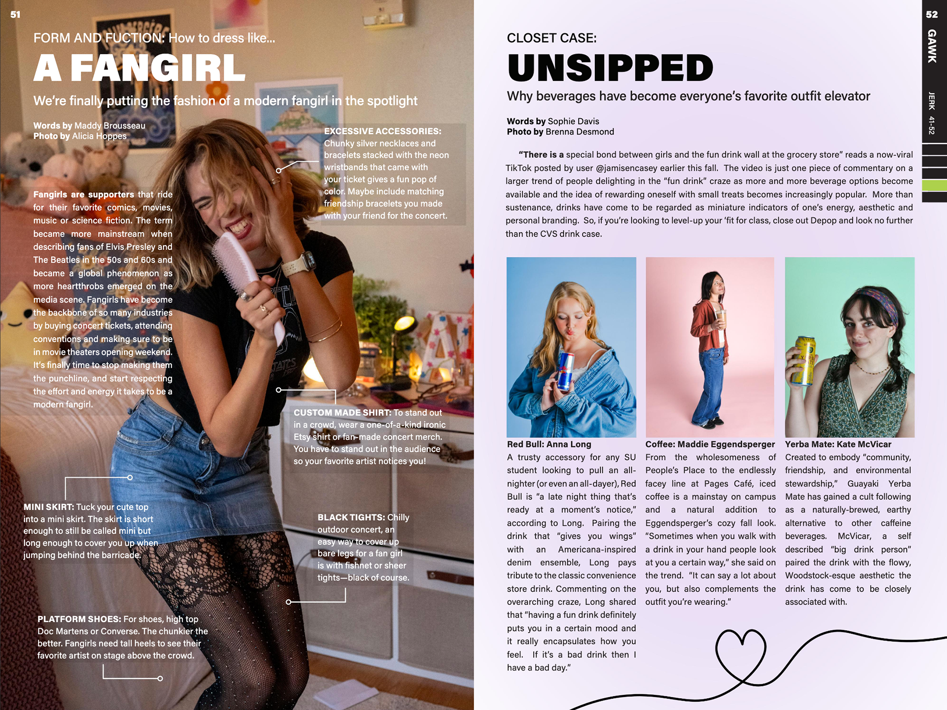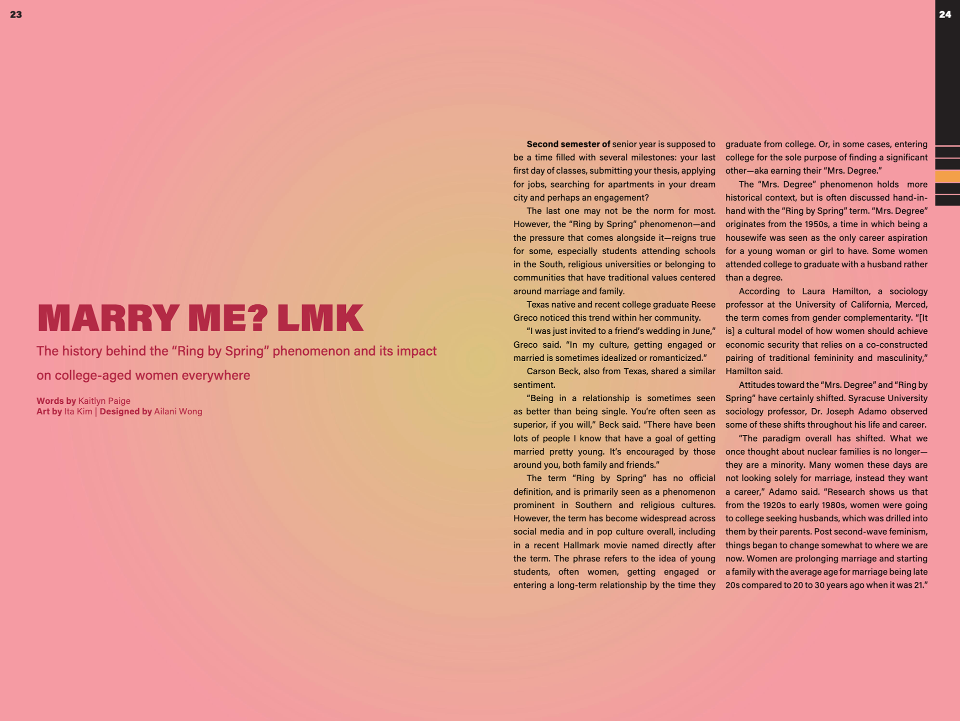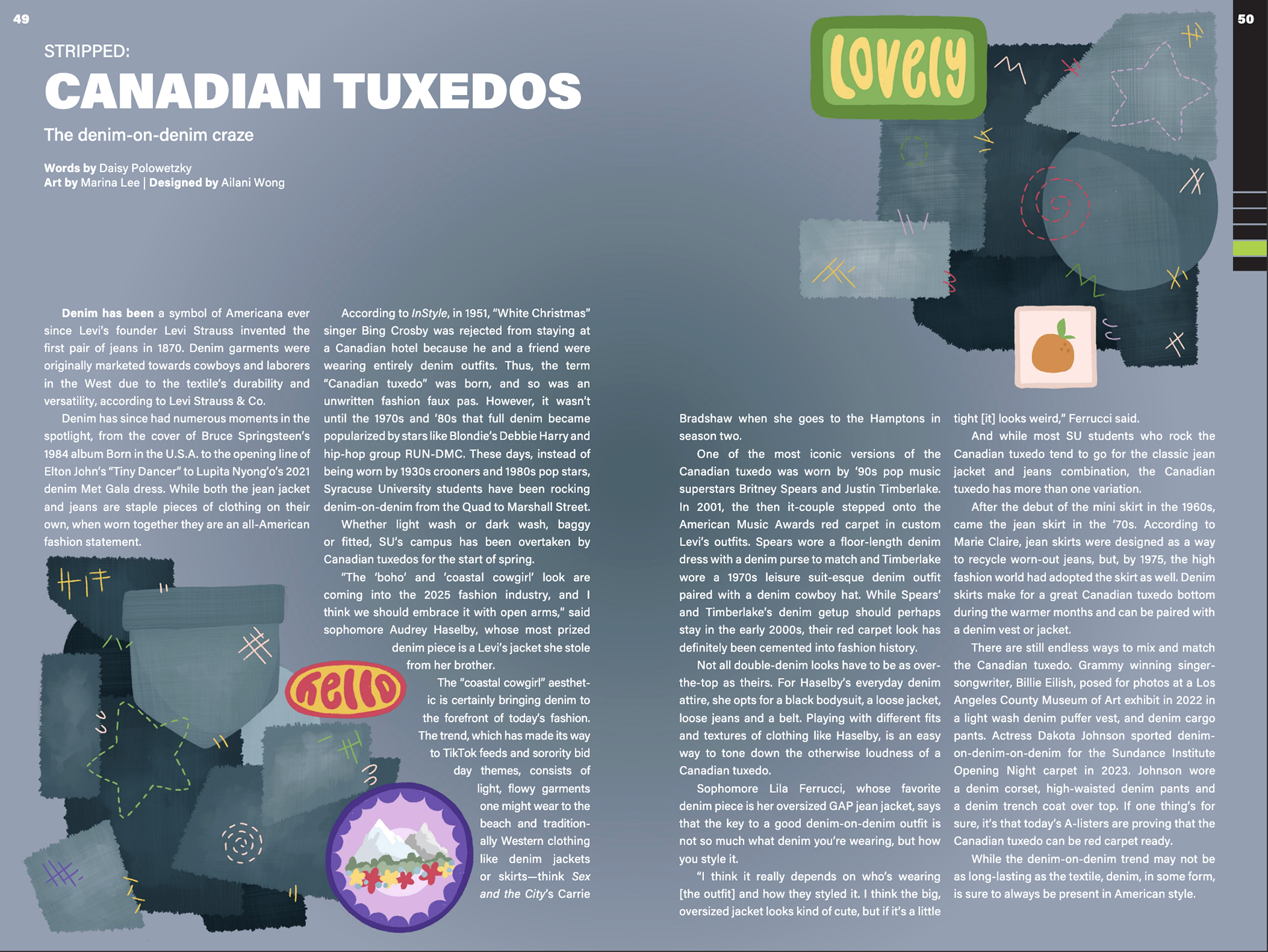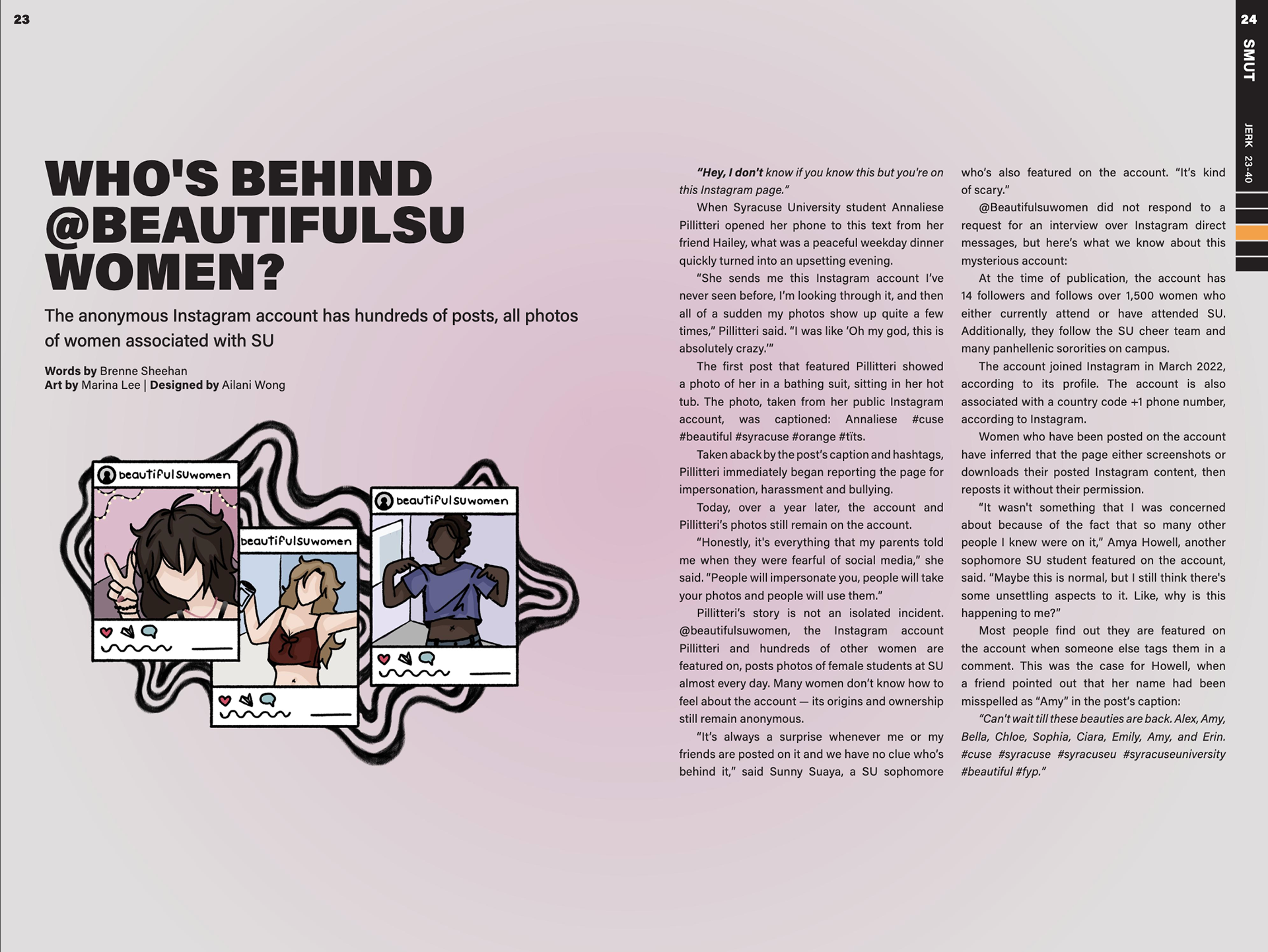 Design magazine spreads for two issues per semester, 6-8 pages each issue