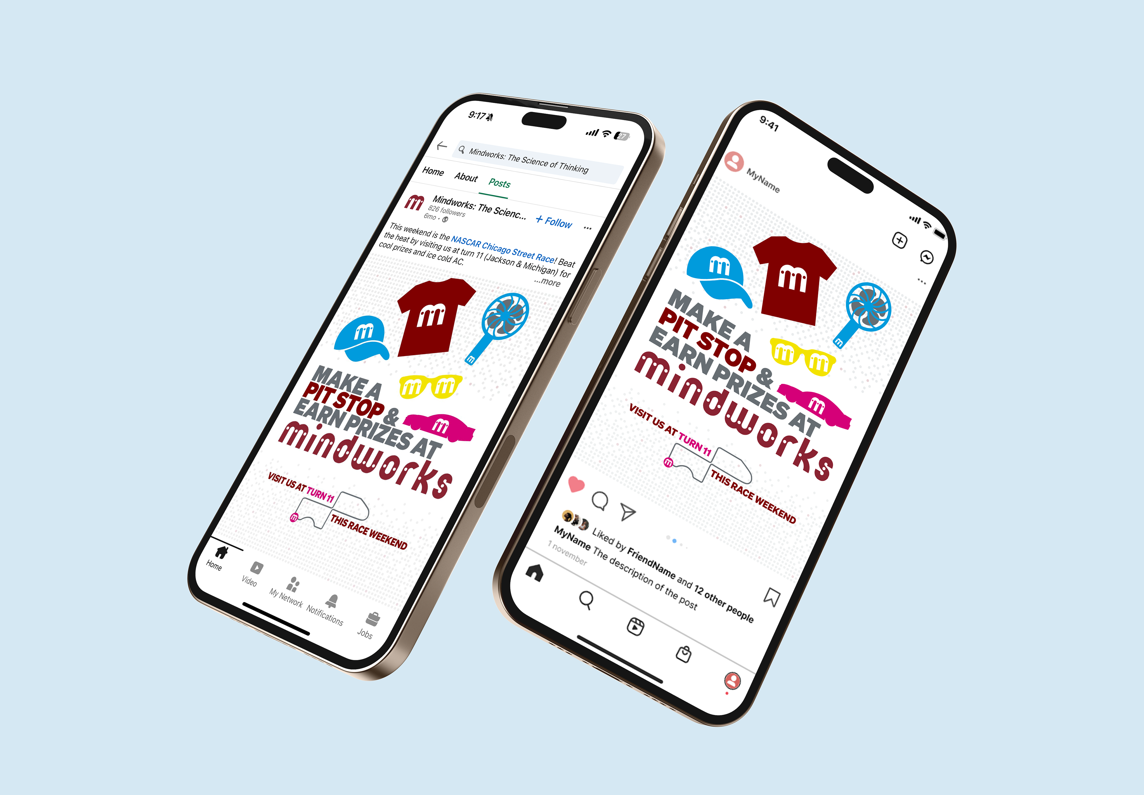 Designed a social media graphic for Mindworks capitalizing on its proximity to the NASCAR Chicago Street Race, creating visuals to attract visitors from the high-traffic event.